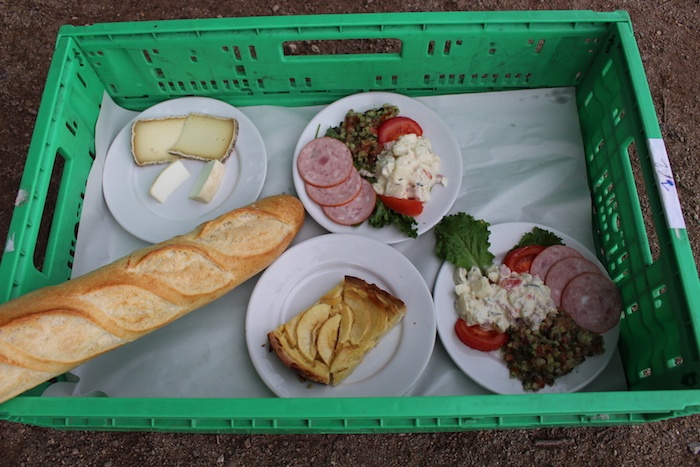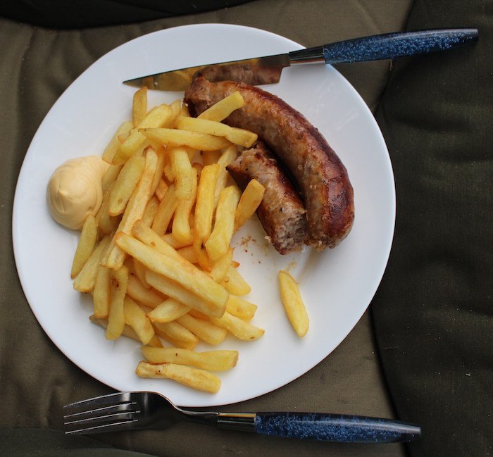 ?s Morgens heerlijk vers stokbrood, chocoladebroodjes en croissants met worst, salade en heerlijke brie. Het toetje bestond uit een stukje gebak, stuk fruit en iets extra?s. Als drinken heerlijk verse jus d?orange en koffie. Het was zeer genieten op de vroege ochtend. Het diner was lekker afwisselend en bestond de ene keer uit lasagne met stokbrood en daarnaast warme ham, de andere dag patat met een stuk worst.
