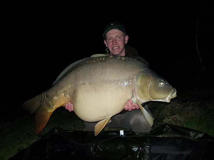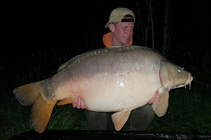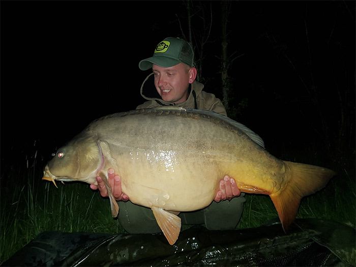 Jeroen ving telkens de wat kleinere slag vissen, dus gaf Roy zijn beurt van de bakkenhengel aan Jeroen. Deze hengel van de stevig aangevoerde kantstek vertrok niet vaak, maar het was bijna altijd een dikke bak. Ook deze keer hing er een lange massieve spiegel aan de andere kant van de lijn!