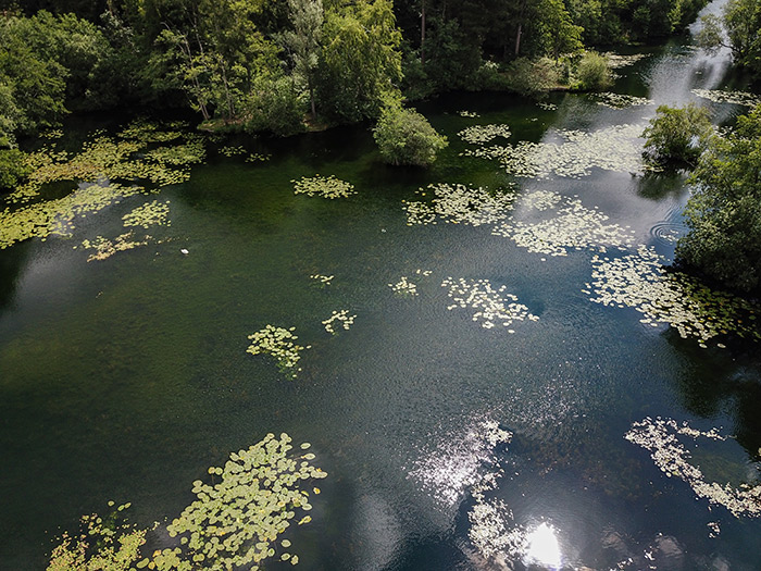 We komen midden in namiddag aan en de zon brandt op het water. Gelukkig staat er een welgekomen, verfrissend briesje veroorzaakt door de stokoude bomen rond het water. Taverham Mill is een oud grindgat, nog voor de oorlog gegraven, en heeft zowat alles wat een karperwater hebben moet: lelievelden, wier, grindplateau’s, eilanden en obstakels. Karperhaven, jawel! Dat resulteert natuurlijk in heel wat interessante spots en stekken en heel wat opties om te bevissen. Grof gezegd laat het water zich opdelen in twee grote baaien en een centraal gedeelte.
