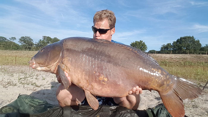 Door het vele natuurlijke voedsel in de plas en door het voeren met onze eigen boilies zijn de karpers enorm in gewicht toegenomen. De kans op een vis boven de 30 pond is zeer groot en daarnaast zwemmen er minimaal 40 karpers boven de 40 pond. Sterker nog: er zwemmen zelfs zo’n zeven vissen van boven de 50 (!) pond op het water rond!