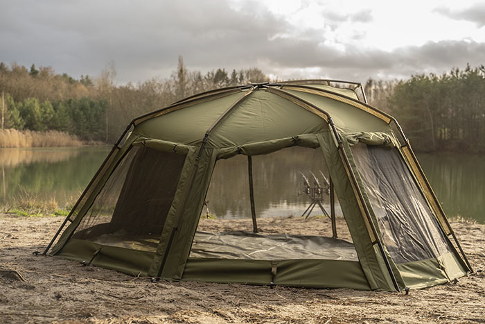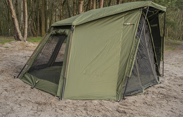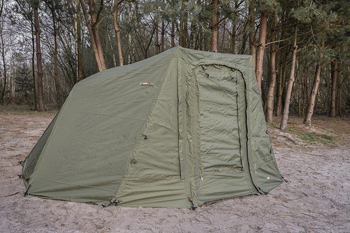 Bijkomend voordeel van deze stof is dat licht er niet makkelijk doorheen komt. Door de 4 zijramen en het grote front kan de tent bijna volledig geopend worden voor maximale ventilatie. De voorkant is voorzien van een muggengaas, welke ook volledig verwijderd kan worden.