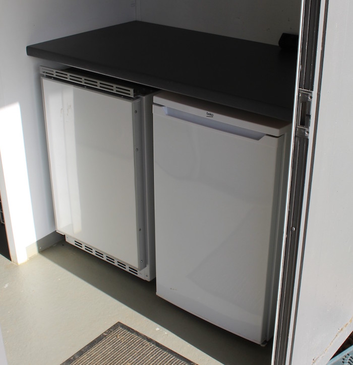 Naast een koelkast is er ook een vriezer aanwezig voor bijvoorbeeld je aas.
