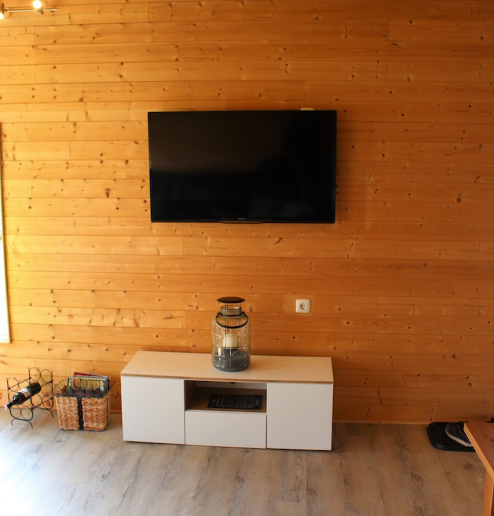 In de woonkamer hangt een grote flatscreen tv. Voor niet-vissend gezelschap ook wel erg relaxed om over te beschikken.