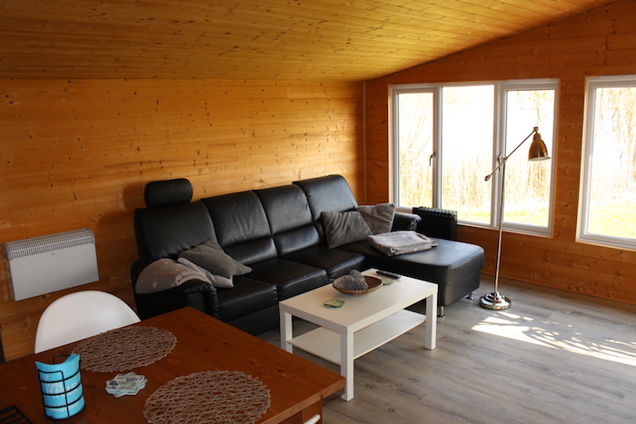In de huiskamer kan je genieten van een heerlijke loungebank en kijk je zo vanuit het raam op je stek. Dat is nog eens relaxed vissen!
