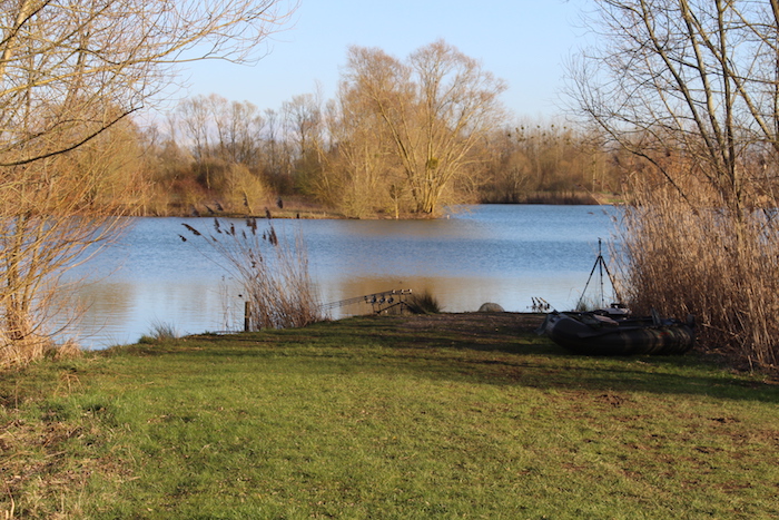 Nadat we zijn geïnstalleerd in ons luxe vakantiehuis beginnen we maar eens met onze hengels klaar te maken. Altijd weer een hele klus om een tactiek te bedenken op een nieuw water waar je voor de eerste keer vist. Gelukkig hebben we een hoop ervaring van andere soortgelijke betaalwateren. We kunnen deze ervaring en systemen gebruiken om hier op te starten. Vanuit deze basis kunnen we uiteindelijk gaan inspelen op de huidige omstandigheden en situatie. Nadat we alles hebben klaar gemaakt varen we één voor één de hengels secuur uit. Twee hengels gaan in een flinke pluk met wier met een helikopter systeem en de laatste met een wafter op een ondiepe richel. Eerst maar eens kijken of we een aanbeet kunnen forceren onder de nog best frisse omstandigheden. De watertemperatuur is pas krap acht graden en dat vertelt ons dat we voorzichtig moeten beginnen.
