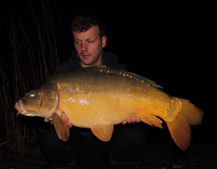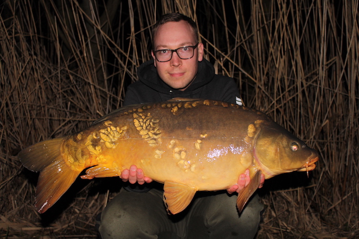 Wellicht dat de vis door de rust wel weer terug zal komen en opnieuw gaat azen. Dat dit de juiste denkwijze was blijkt wel als we rond middernacht toch weer een aanbeet krijgen. Nu is het de beurt aan Timon die een prachtige ongeschonden spiegel vangt.