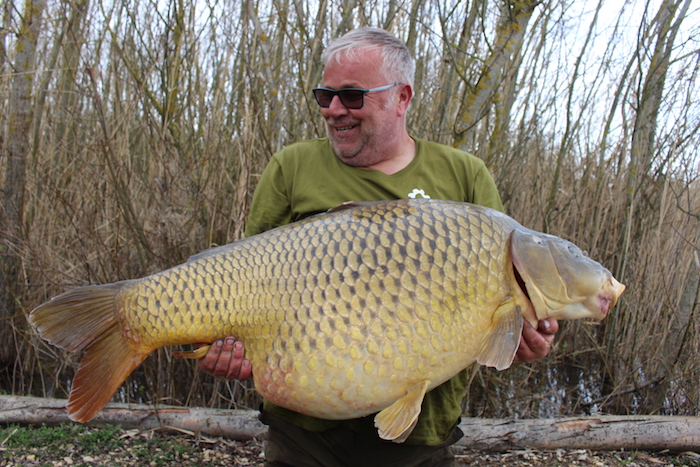 Daar aangekomen blijkt waarom hij ons heeft geroepen. Een ongelooflijke dikke schubkarper is zijn buit van maar liefst 28 kilo! Prachtig om zo’n grote karper eens in het echt te zien. Op zo’n moment hoef je de vis nieteens zelf te vangen. We zetten met plezier de vis van Gary op de foto. Wat een geweldig moment!