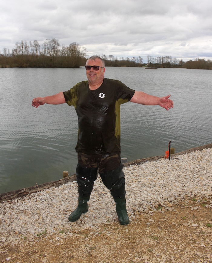 Wat we niet wisten is dat deze bijzondere schubkarper een nieuwe PR voor Gary betrof. Beheerder Lenny (een goede vriend van Gary) trakteerde hem daarom ook nog even met een PR douche. Een echte bikkel met dat koude weer. Wel een geweldig moment om mee te maken dat je samen, als vissers plezier hebt met elkaar!
