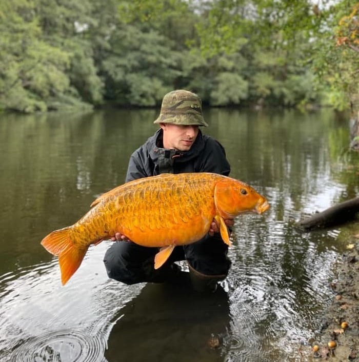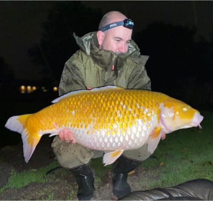 Door regen en wind wist Jeroen Henskens deze beauty van een koi te vangen!