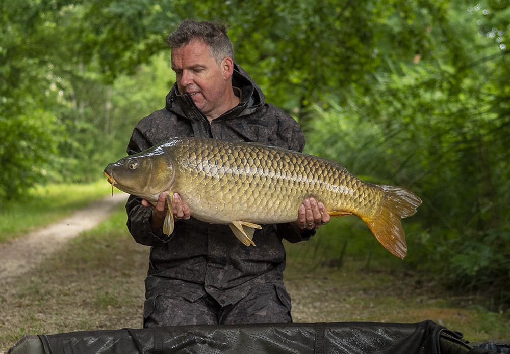 De volgende ochtend werd ik gewekt door een volle fluiter op mijn rechterhengel die onder eigen kant lag. Na een korte dril was mijn eerste Brocard karper een feit! Een langgerekte schubkarper kon na het nemen van de nodige foto’s teruggezet worden. Snel de hengel weer op de juiste plek en extra genieten van een lekker bakkie koffie.