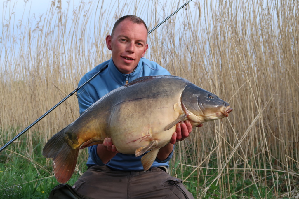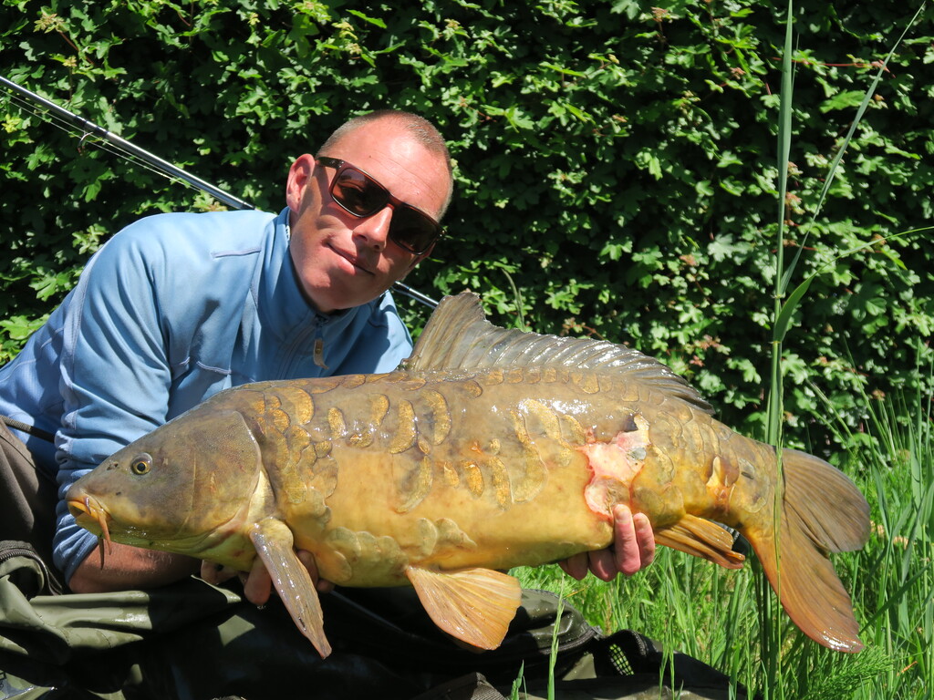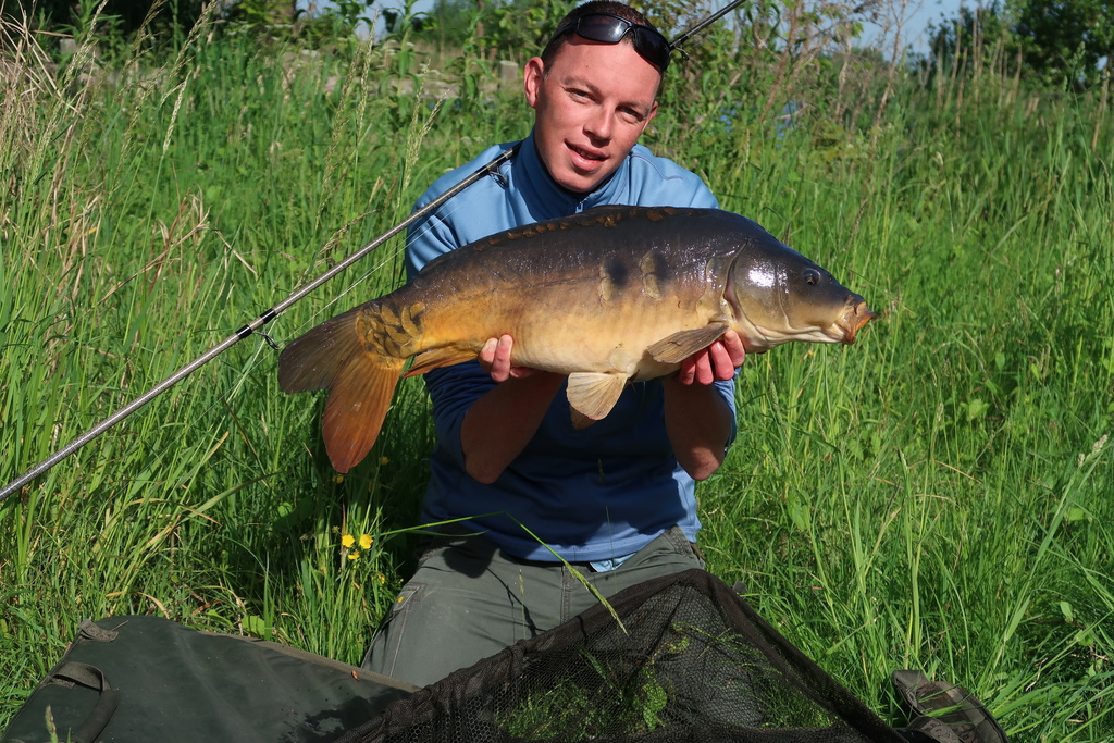 Het lukte om deze vis te verleiden met de korst en ik weet nog dat ik er om meerdere redenen enorm blij mee was! Dat korstvissen, zoals in het Rini Groothuis Grote Karperboek omschreven, was me voor het eerst gelukt. Het was een nieuw record voor me (een dikke twintigponder 😊) en het was ook nog eens die ene spiegel…