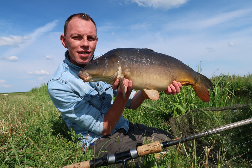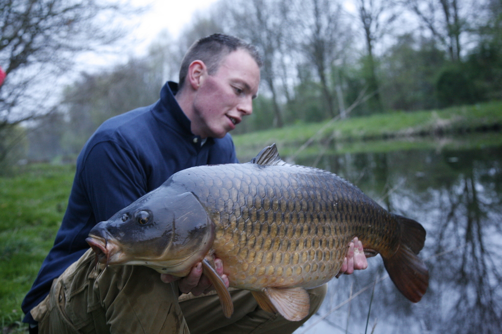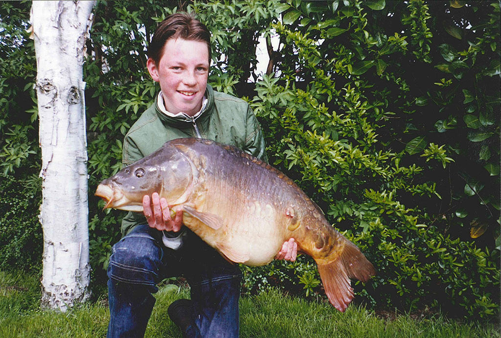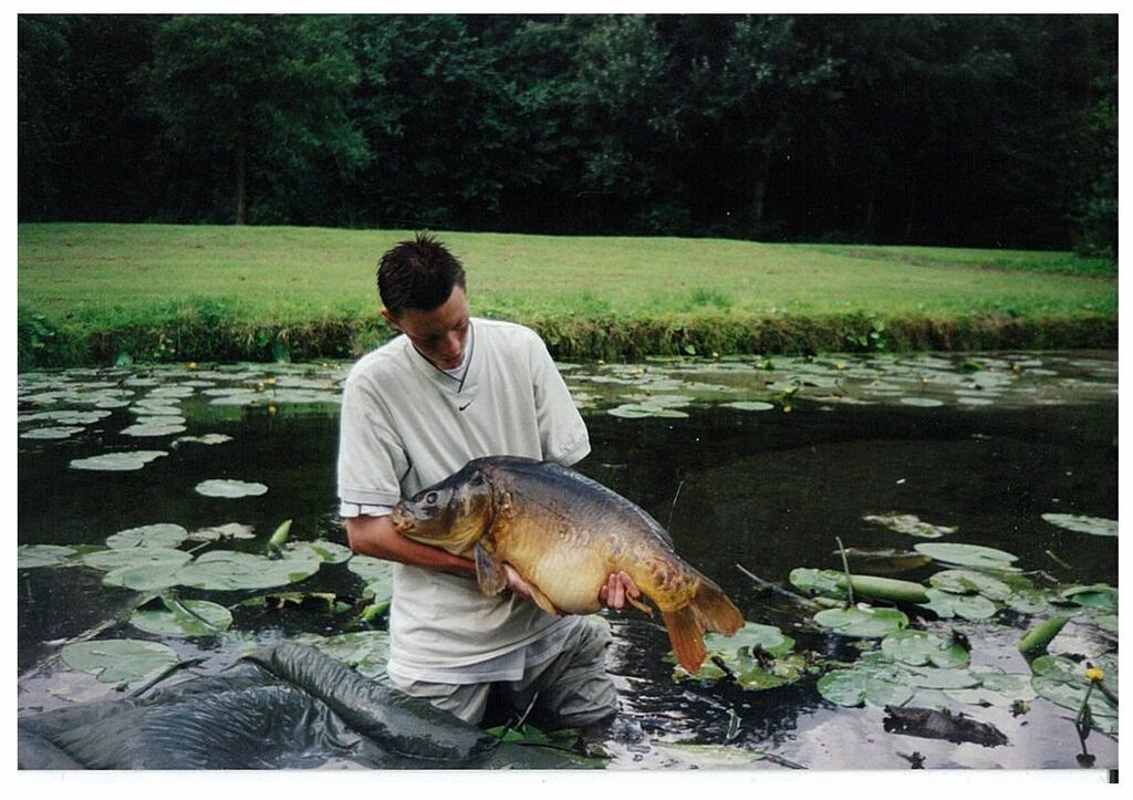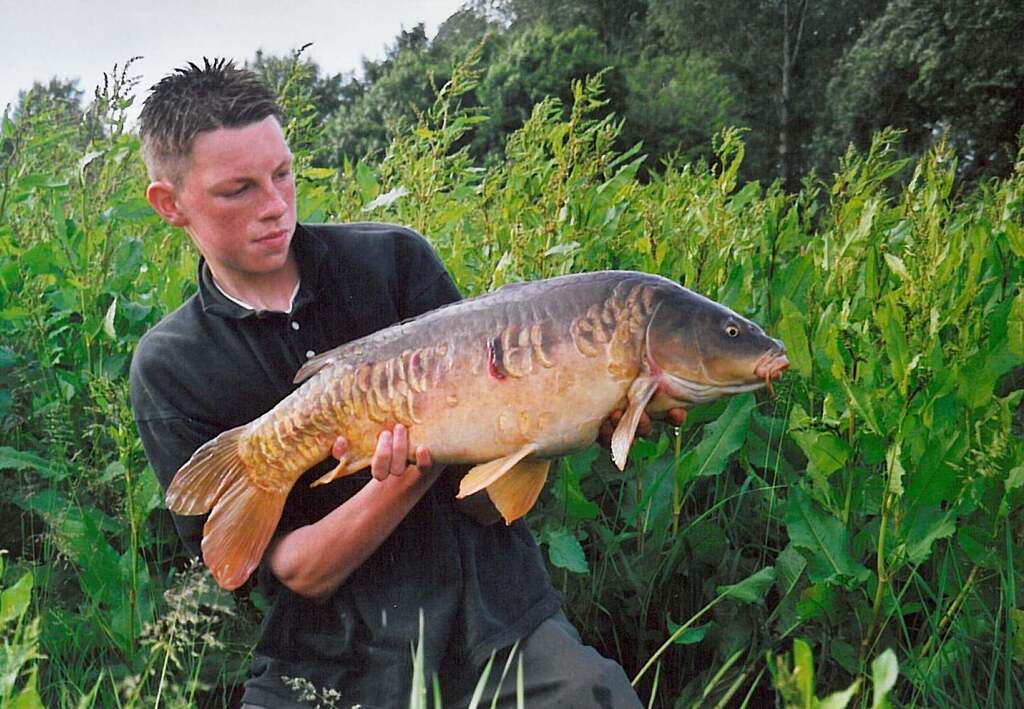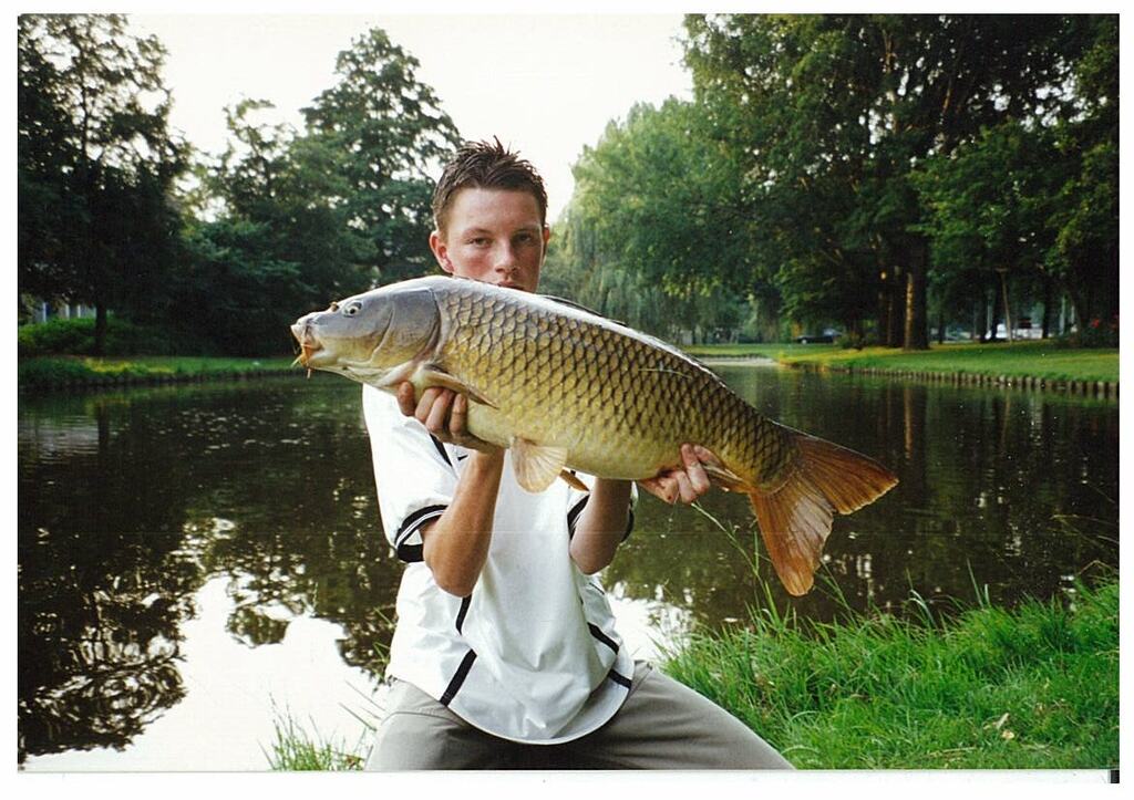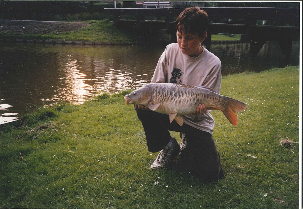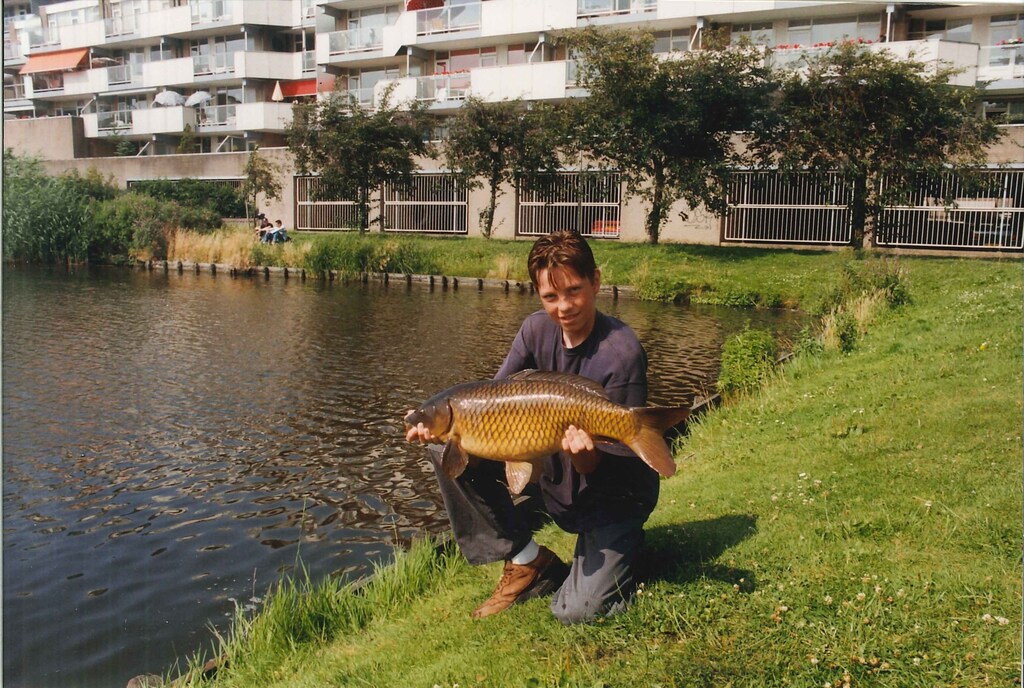 Robert: Uiteraard, daarvoor gaan we dan terug naar mei 1997. Toen ving ik mijn eerste oppervlaktevis ooit. Dat was deze oude spiegelkarper in het Schollebos in Capelle a/d IJssel. Die had ik gespot in wat tussenuren van (ik meen) de brugklas. Snel naar huis gefietst, hengel en brood mee. Eenmaal teruggekomen lag de vis nog steeds in dezelfde afgelegen hoek van het slotencomplex, tussen wat opkomende lelies.