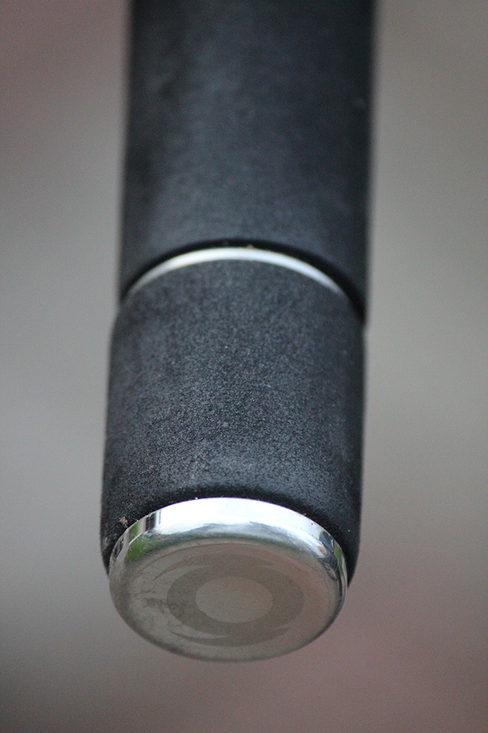 De achterkant van de hengel is volledig bedekt met zwarte shrink tube om het geheel een strakke look te geven. Daarnaast zorgt deze tube ervoor dat de hengel stevig in de hand ligt. Het achterste punt van de hengel is extra verstevigd, zodat dit deel goed beschermt blijft als de hengel op de grond rust. Ik val misschien een beetje in herhaling, maar wat kun je er aan doen… Ook dit deel is simpelweg heel gaaf afgewerkt!