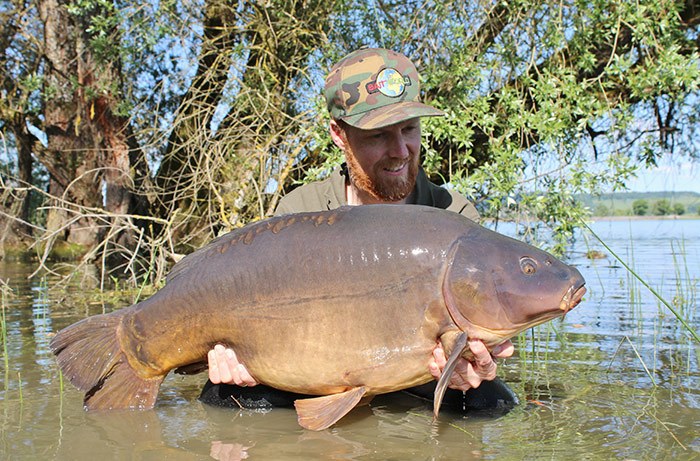 Niels met een fraaie spiegel die in een heerlijk zomers decor viel voor het aas van Baitworld. Kan het nog beter?