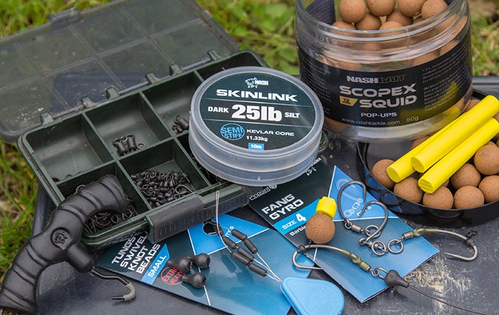 Rigs en haakaas zijn bij deze visserij ook uiterst belangrijk. Ik kies altijd voor een rig die resistent is aan het constant oppikken zonder in de war te raken. Het liefst gebruik ik haakaas dat zo goed mogelijk op mijn voerboilies lijkt. Een 12mm Scopex Squid pop-up met een stukje geel foam erop is uiterst effectief en kan makkelijk bijgeknipt worden zodat de rig perfect uitgebalanceerd is. Ik pas de manier van uitbalanceren aan op de bodem waarop ik vis. Ik gebruik sneller zinkend aas op harde zandbodem, terwijl ik langzaam zinkend aas, dat zich zachtjes settelt, verkies op een wierbodem.