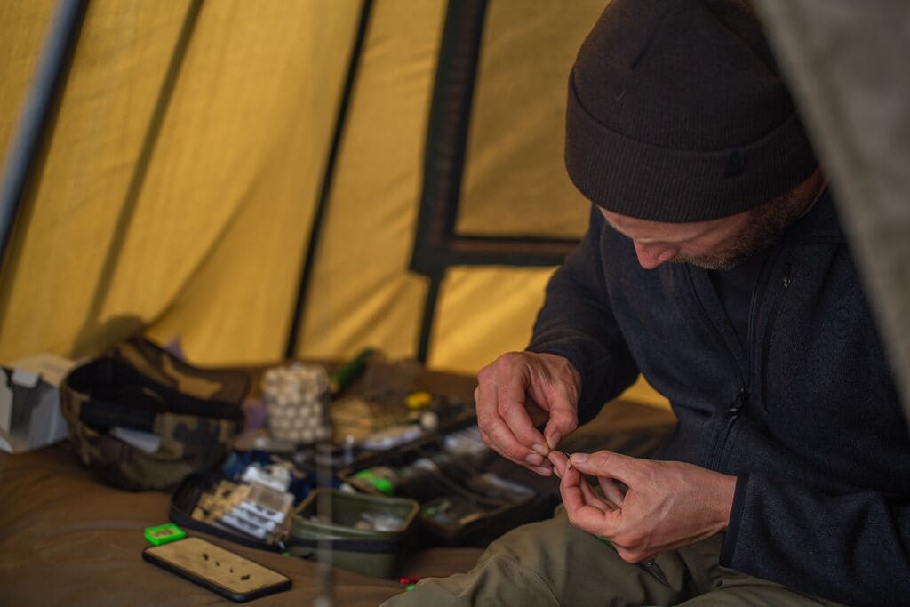 De mega scherpe haken die ik gebruik moet ik namelijk vaker vervangen en met de spinner rig kan ik dit in een ogenblik doen zonder de onderlijn te hoeven vervangen. Dat zie ik echt als een groot voordeel. Beide rigs vis ik helikopter stijl met naked beads op de hoofdlijn. Dit valt op de bodem namelijk heel mooi weg en door te spelen met de plaatsing van de kralen kan ik de onderlijn ook meer of minder ruimte geven.