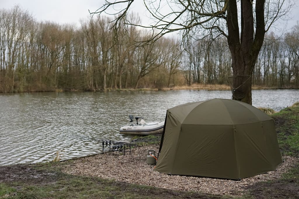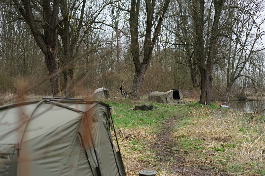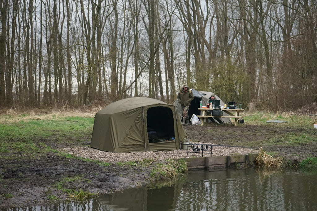 Omdat deze sessie in het teken staat van gezelligheid, kiezen we ervoor om met zijn allen te vissen vanaf stek twee in plaats van ieder een eigen stek. Het voordeel van deze stek is dat je ook een redelijk deel van stek drie kan bevissen en er veel ruimte is om meerdere tenten op te zetten.
