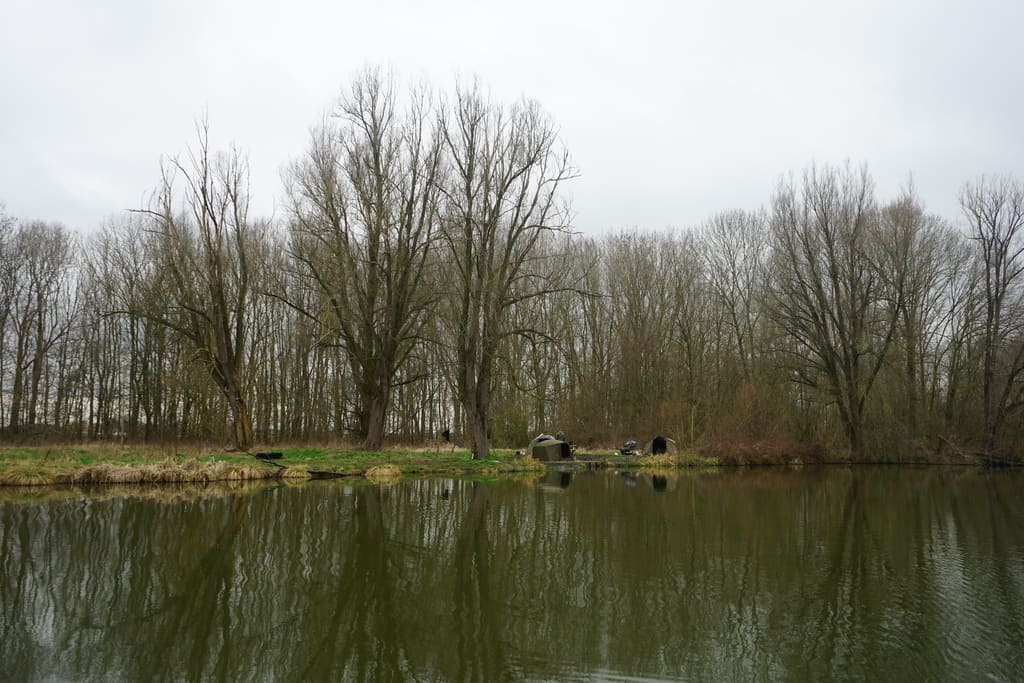 Het eerste wat ons opvalt is de fantastische ligging van dit domein. Midden tussen de weilanden en verscholen in een klein stukje bos ligt dit prachtige water. Nadat we samen met Ton een rondje hebben gelopen is het al tegen vieren en wordt het tijd om onze spullen naar de stek te brengen.