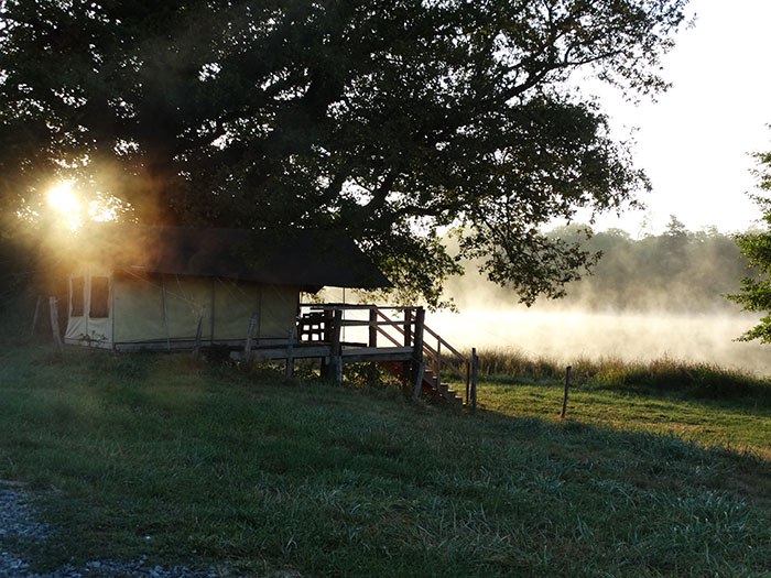 Op elke van de negen stekken staat een grote tent die voorzien is van twee eenpersoonsbedden, een kast voor het opbergen van je spullen en een picknicktafel met stoelen. Ook als het langere tijd regent kun je hier goed vertoeven.