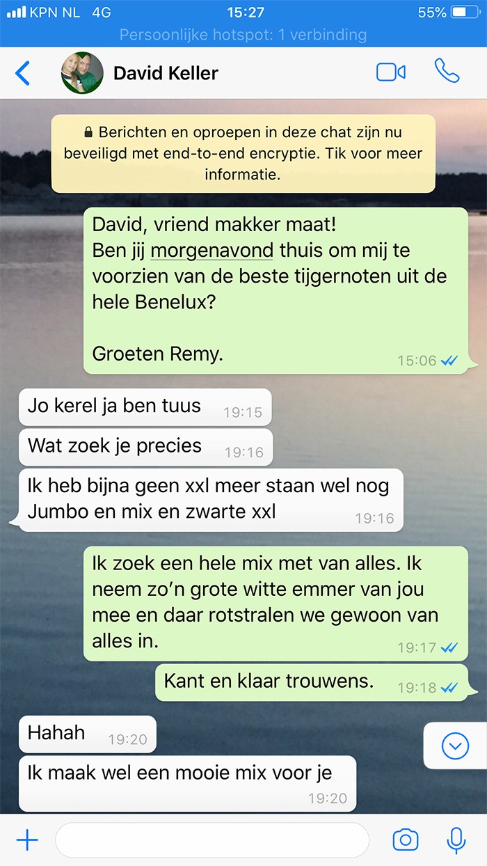 Dit wil je natuurlijk niet zien, gelukkig hebben we nog een baal tijgernoten kunnen halen.