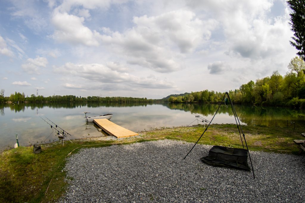 Bij aankomst op stek 8 valt ons direct de ruimte, mooie ligging en verharde grind en grasaanleg van deze stek op. De stek ligt op een punt en is uitgerust met een mooie houten steiger waar de gehuurde roeiboot al schoon en fris voor ons klaarligt. We hoeven alleen onze motor, accu en fish-finder nog maar aan te koppelen. Er is op de stek voldoende plaats voor meerdere bivvies en specifiek voor stek 8 is er een Lodge uitgevoerd met TV, eenvoudige keuken, magnetron, koelkast en vrieskist. De Lodge heeft verder geen ramen en geeft ons hierdoor in de eerste indruk een wat bunkerachtige en donkere uitstraling. Tijdens de vissessie blijkt de Lodge echter super praktisch te zijn! Er staan diverse stellages in waar je de visspullen overzichtelijk neer kan zetten.