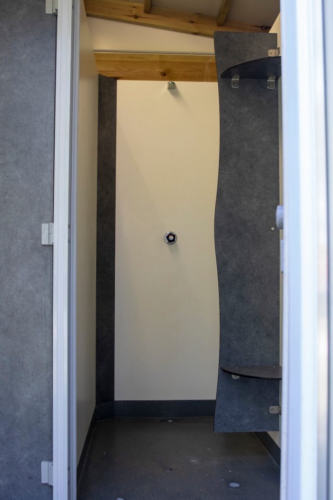 Het feit dat er stroom is werkt natuurlijk ideaal en super de luxe en als het regent kun je met de beide deuren open en gezellig binnen zitten. Er hangt een lamp buiten met bewegingssensor, er staat een tafel met stoelen en een grote houten tafel met bank buiten. De Lodge is tevens ruim genoeg om met meerdere vrienden in plaats van een bivvy te gebruiken om je stretchers in te zetten of als je met het gezin op vakantie gaat, deze uitgebreid als verblijf- en slaapaccommodatie in te richten. Er passen met gemak wel zes stretchers in om je een idee te geven van de omvang. De stek is afgesloten met een hek en dit geeft een veilig gevoel. De Lodge is ook af te sluiten waardoor je spullen altijd veilig staan tijdens een dagje uit in de mooie omgeving van Zuid Frankrijk.