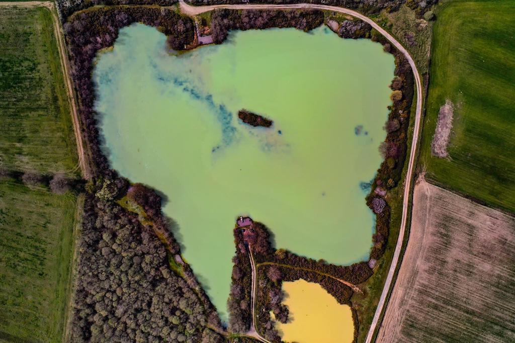 Vanaf deze drone foto is een deel van de onderwater situatie op Busters lake heel goed te zien.