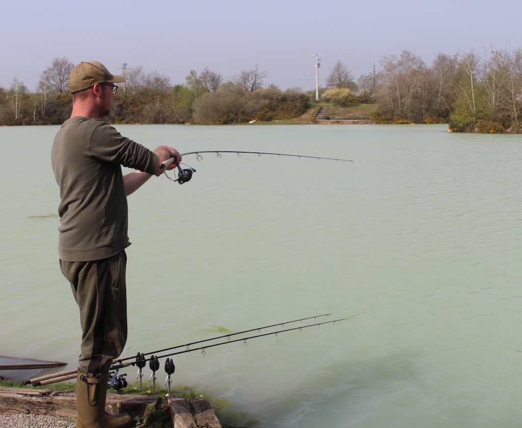 Van de twee bevisbare wateren op het domein van Lac de Viennay vist Thimon op Busters Lake.