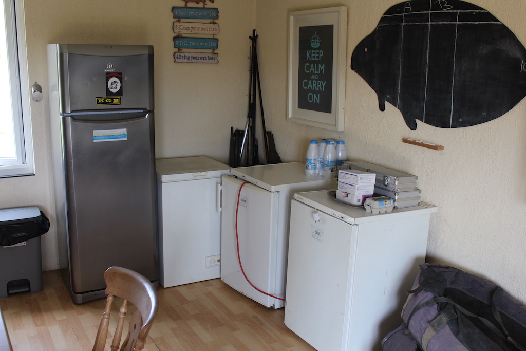 • meerdere koelkasten en vriezers om je boodschappen en aas in koel te houden;