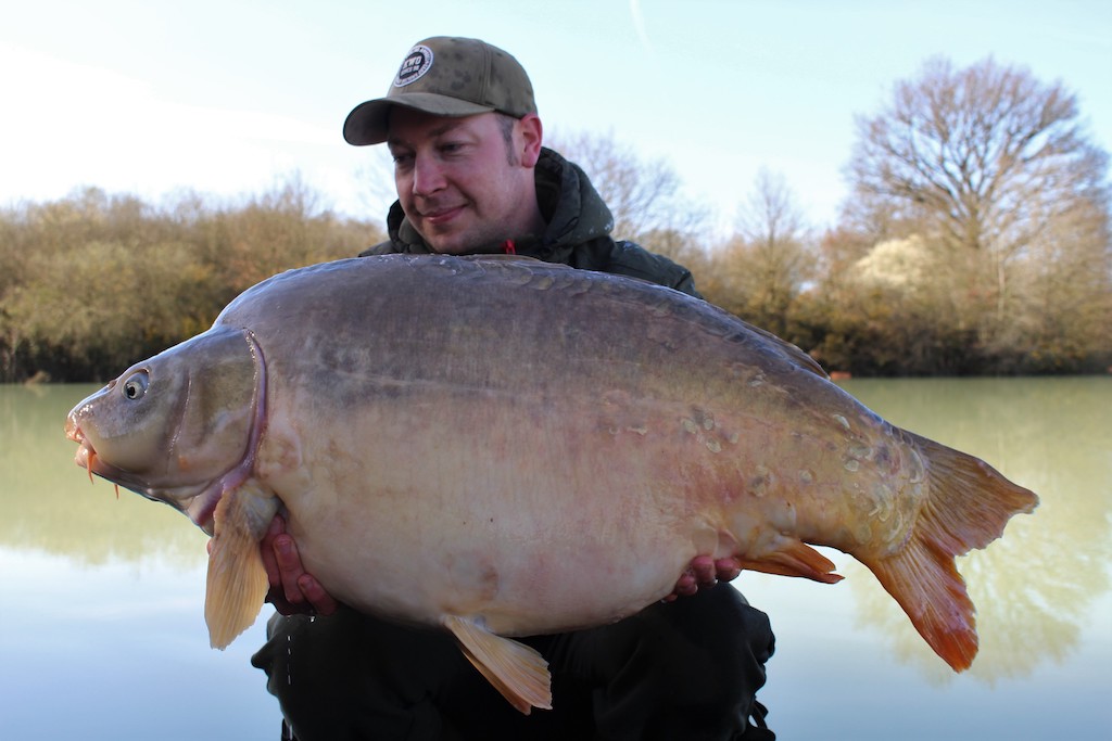 • De topvis van Busters Lake weegt momenteel ruim 27 kilo (spiegelkarper) en inmiddels zwemmen er drie bekende vijftigers rond.