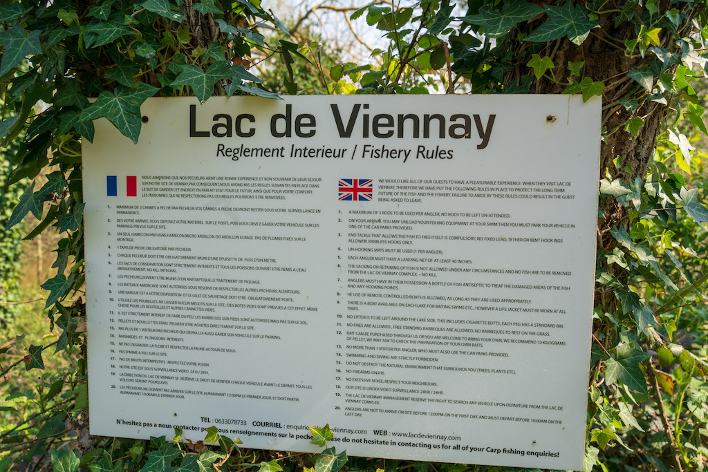 Op het domein van Lac de Viennay kan het niet missen met het reglement. Op ieder water hangen namelijk meerdere overzichtelijke borden met daarop alle regels beschreven die gelden op het meer. Mocht je dus even de regels willen teruglezen dan kan je dat op je gemak aan het water nog eens doen, ideaal! Verder zijn er een aantal belangrijke basisregels opgesteld waaraan iedereen zich dient te houden. Bij inbreuk op het reglement behoudt de eigenaar zich het recht je van het domein af te sturen zonder compensaties! Je vindt het reglement hier.