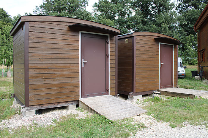 Bij aankomst staan twee mooie houten hutjes. Beide zijn voorzien van een toilet, wasbak en een douche. Ook is er een koelkast aanwezig met een klein vriesvak en meerdere oplaadpunten. Daarlangs gelegen staat nog een chaletje waarin de eigenaar wat klein materiaal verkoopt, wat natuurlijk altijd handig kan zijn! Ook bied hij de mogelijkheid bij warm weer een koud biertje te serveren voor een schappelijke prijs. Daarlangs maakt hij graag een frietje of een hamburger voor je in zijn keukentje.