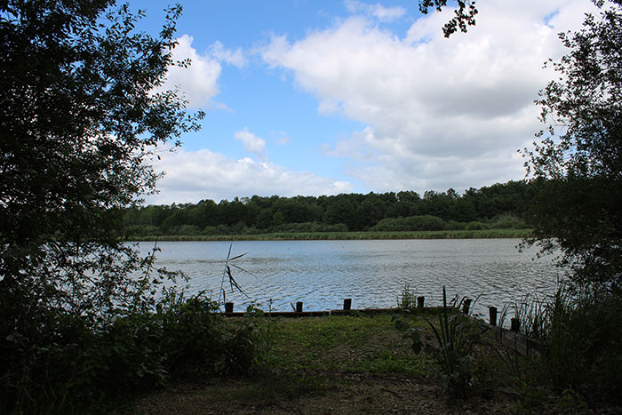 We blijven met de klok mee draaien, en dat brengt ons bij stek zes. Je zit hier op een landtong en ook deze stek bied gelegenheid voor twee vissers. Net zoals bij stek vijf kun je vanaf hier tegen de rietkragen en overhangende takken vissen. Het is hiermee echt een stek die veel mogelijkheden bied.