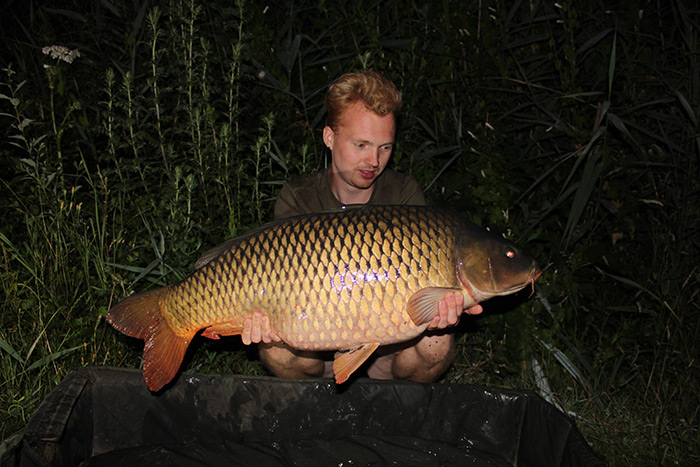 Het water kent gelukkig geen dwergmeerval en ook brasem en zeelt is amper te bekennen. Deze week heb ik enkel met hennep en 10 millimeter boilies gevist en geen enkele bijvangst gehad. Je kunt hier dus je complete trukendoos opengooien qua klein aas! Wat dan ook zeker de doorslag kan geven, vooral omdat de bodem zo zacht is en een zware 20 millimeter boilie al gauw weg zakt in de sliblaag. Persoonlijk vind ik de schubkarpers hier erg mooi, ze zijn namelijk licht van kleur wat je in deze Franse regio zelden tegen komt.