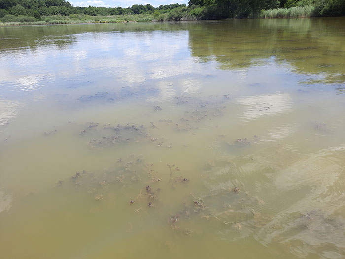 Het was ook erg warm, wat niet ten voordelen komt op een erg ondiep water. Stek twee was deze week ook vrij, hiervoor gelegen staat een prachtig groot wierveld. Ik heb mijn hengels een kwartslag gedraaid en ze vervolgens alle drie midden in het wier laten zakken. De planten bieden namelijk niet alleen veel voedsel, maar ook bescherming en verkoeling tegen de zon!