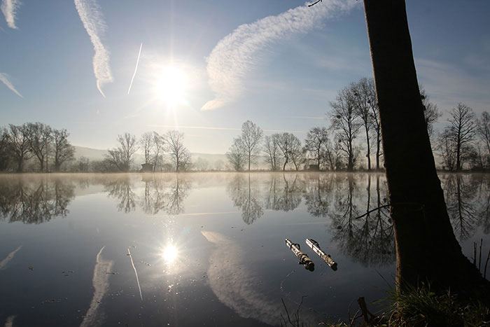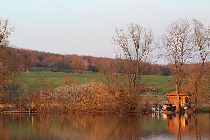 Het is volledig omgeven door prachtige wilgen, wat het water een mooie natuurlijke uitstraling geeft, verder ligt het tussen het glooiende gebergte invan de Franse Ardennenwaardoor jij je meteen in een totaal andere wereld waant. Direct een gevoel van rust en ruimte door het weidse uitzicht. Prachtig! Jos vertelt direct honderduit over het water. Het is duidelijk zijn lust en zijn leven.