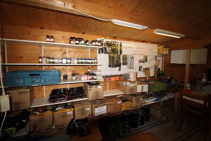 In de maand voorafgaande aan deze sessie had ik eerder dan verwacht mijn visbus verkocht, dus ik zat wel even kort met mijn handen in het haar hoe ik toch al diekarperspullenin onze kleine auto mee zou kunnen krijgen. Nou.. deze zorg bleek nergens voor nodig want de huisjes blijken volgens de uitgebreide informatie van The Carp Specialist volledig te zijn uitgerust met o.a. bedden, stoelen, tafels, kookgerei, kachel, stroom, kasten, koelkast en magnetron!