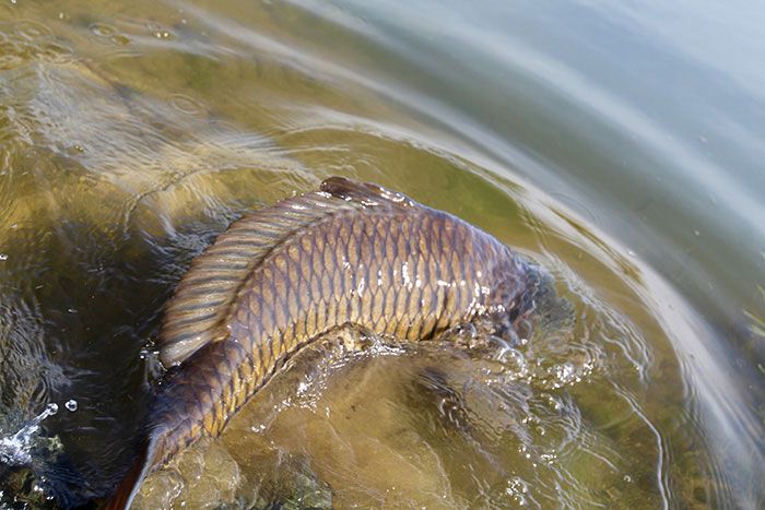 De vis was goed actief, ondanks de lage watertemperatuur.