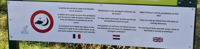 Heel veel Franse wateren hangen ook vol met borden: ?Peche interdite of terrain priv?. Het spreekt natuurlijk redelijk voor zich dat je hier dus niet mag vissen. In Nederland zijn we gewend om eigenlijk bijna overal te kunnen (nacht)vissen en anders staat het vaak vrij goed aangegeven of dit wel of niet mag, maar dit is in Frankrijk niet het geval!
