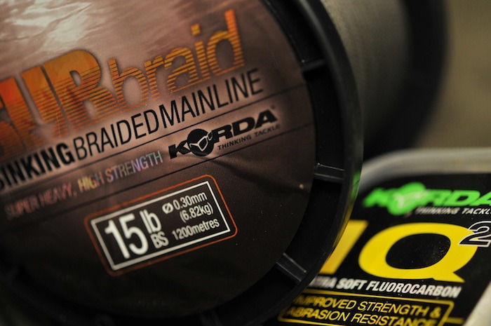 De bovenstaande zaken zorgen er voor dat ik groot fan ben geworden van de gevlochten lijn die ik gebruik. Iets wat ik echter nog niet heb aangehaald is het camoufleren van je lijn. De ‘SUBbraid’ die ik gebruik is snel zinkend en is voorzien van een onopvallende kleur. Dankzij de soepelheid volgt het dan ook mooi de contouren van de bodem. Maar in vergelijking tot fluorcarbon valt het materiaal visueel een stuk meer op. Om die reden gebruik ik voor de laatste paar meter graag een korte fluorcarbon leader, zo?n vier a vijf meter lengte met een trekkracht van twaalf of vijftien lbs heeft daarbij mijn voorkeur. Aan de ene zijde komt de hoofdlijn en aan de andere kant een leadcore leader met daarop mijn montage. Op die manier heb ik het beste voor allemaal. De leadcore geeft mij zekerheid, de fluorcarbon zorgt dat alles uit het zicht is en de gevlochten lijn vind ik perfect als hoofdlijn.