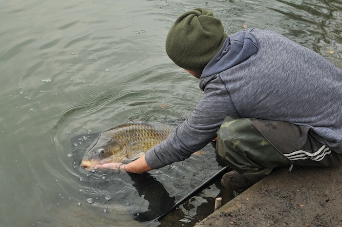 Tijdens de winter ving ik veel vissen op een obstakelrijk stuk van het water.