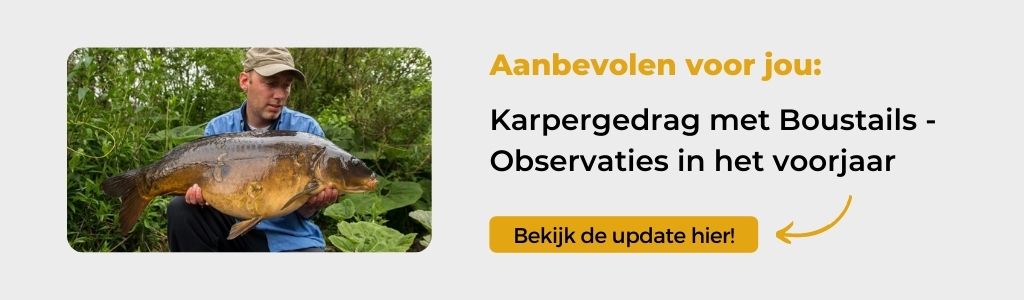 Op ondiepere wateren trekken de karpers langs de ondiepe kanten omdat deze sneller opwarmen. Die warmte activeert ze en langzaamaan beginnen ze dus ook aasdrang te krijgen. Prima om ze daar te gaan belagen!