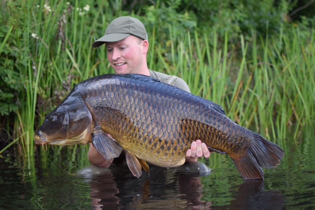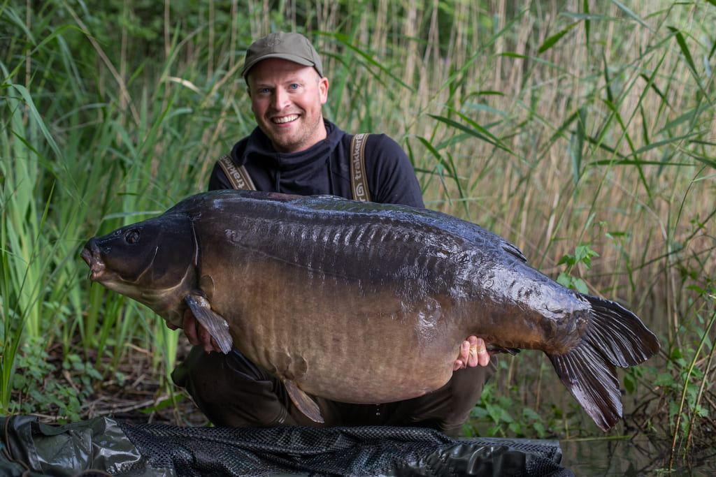 Toen hij voor het schepnet opdook wist ik het: dit is de ‘Zwarte Spiegel’! De eerste poging om hem te scheppen miste ik hem, maar gelukkig was de tweede poging raak en was het de enorme spiegel waar ik op hoopte. De vis is even tot het eerste licht bewaard om hem vervolgens veilig op de foto te zetten. Pas daarna begon het bij mij te landen dat ik een dergelijk grote vis heb gevangen. Met een gewicht van 37,8 kilo was het een bizar PB en ook nog eens een tweede vis boven de 70 pond in eigen land.