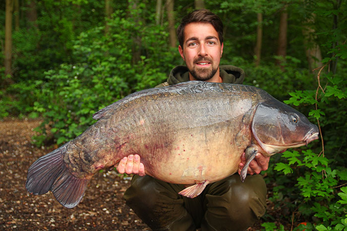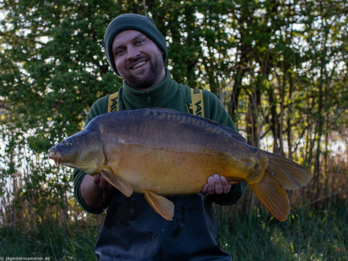 De perfecte voorbereiding maakte Kai Köttelwesch’s voorjaar tot een succes! Vanaf begin april bereidde hij zijn voerplek elke twee dagen voor met 18 mm Mussel Insect en Scoberry Boilies, die hij vooraf had geweekt in hennepolie en de nieuwe ananas liquid. Kai voerde zeer verspreid en ving de vissen met een pop-up op een Hinged Stiff Rig en een wafter op een D-rig.
