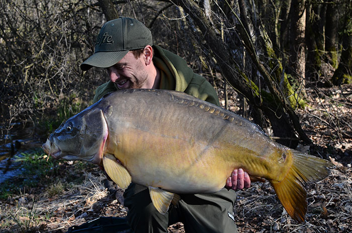 Na twee nachten zonder karper bracht een enkele, onopvallende Seafood Wafter deze spiegel op de mat. Maxim Dimnitsch was door het dolle heen!