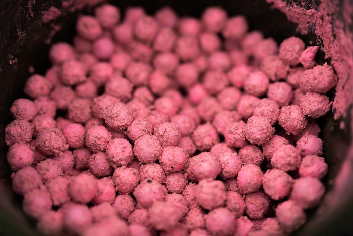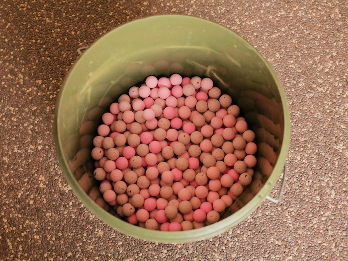 Mix de twee soorten boilies door elkaar heen.