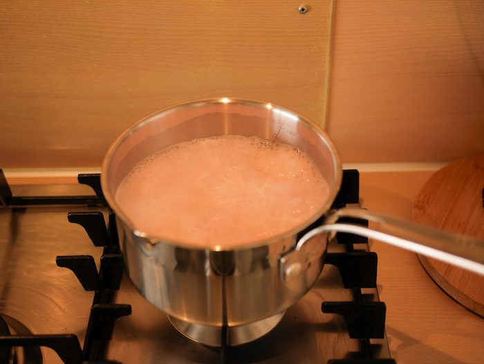 Neem je fles Yogo en verwarm deze in een keteltje/pannetje tot deze rustig kookt.