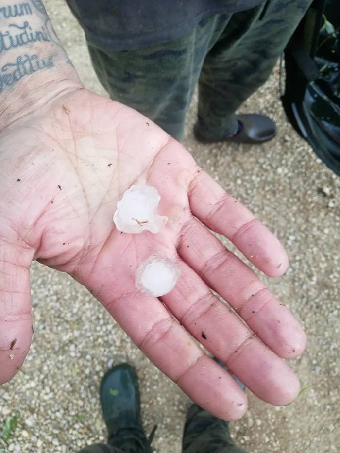 Hagelstenen van dit formaat doen natuurlijk behoorlijk wat schade aan je uitrusting!