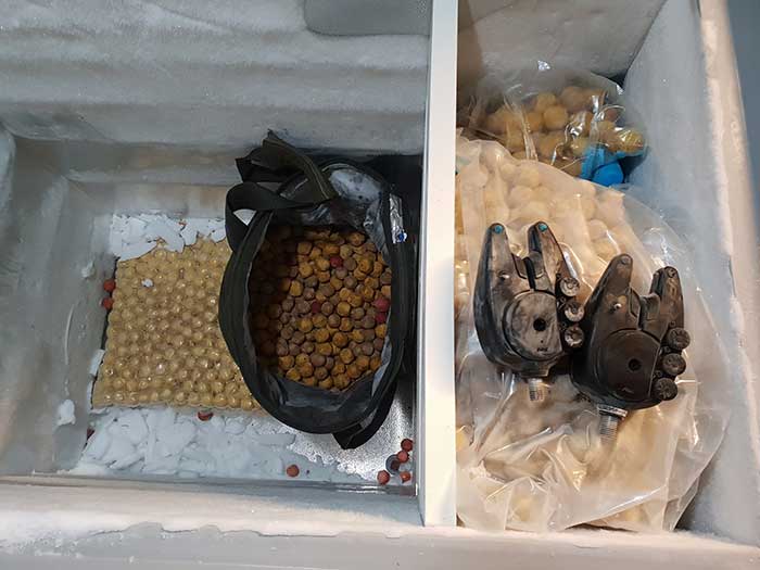 De diepgevroren RX-en deden het nog prima! Het aantal kilo boilies dat over is na een seizoen vissen is aan de lage kant… #lekkergevangenjazeker