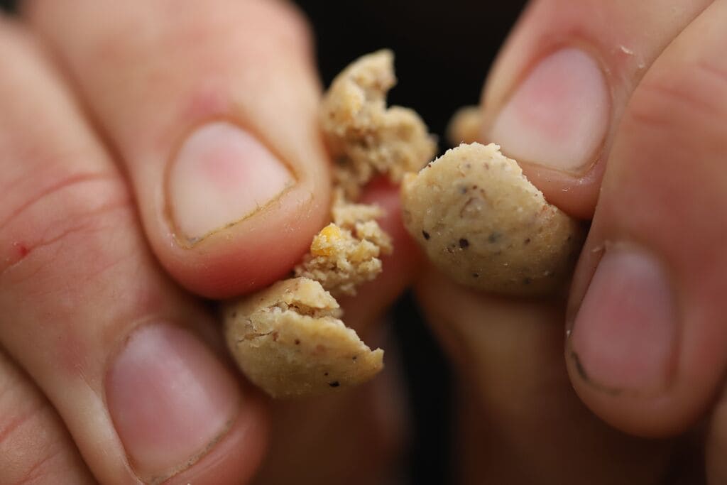 Met een lage watertemperatuur werkt de spijsvertering van een karper vele malen trager dan normaal. Om deze reden zal je zeer bewust moeten voeren. Ik probeer te voorkomen dat ik voer met verzadigende voedseldeeltjes en kies er in de winter bewust voor om veel gebruik te maken van makkelijk verteerbaar aas. Met Mainline ben ik zo al jaren bezig met de ontwikkeling van Fybre. Dit is echt een speciaal voor de winter gemaakte boilie die de vis extreem goed kan verwerken.